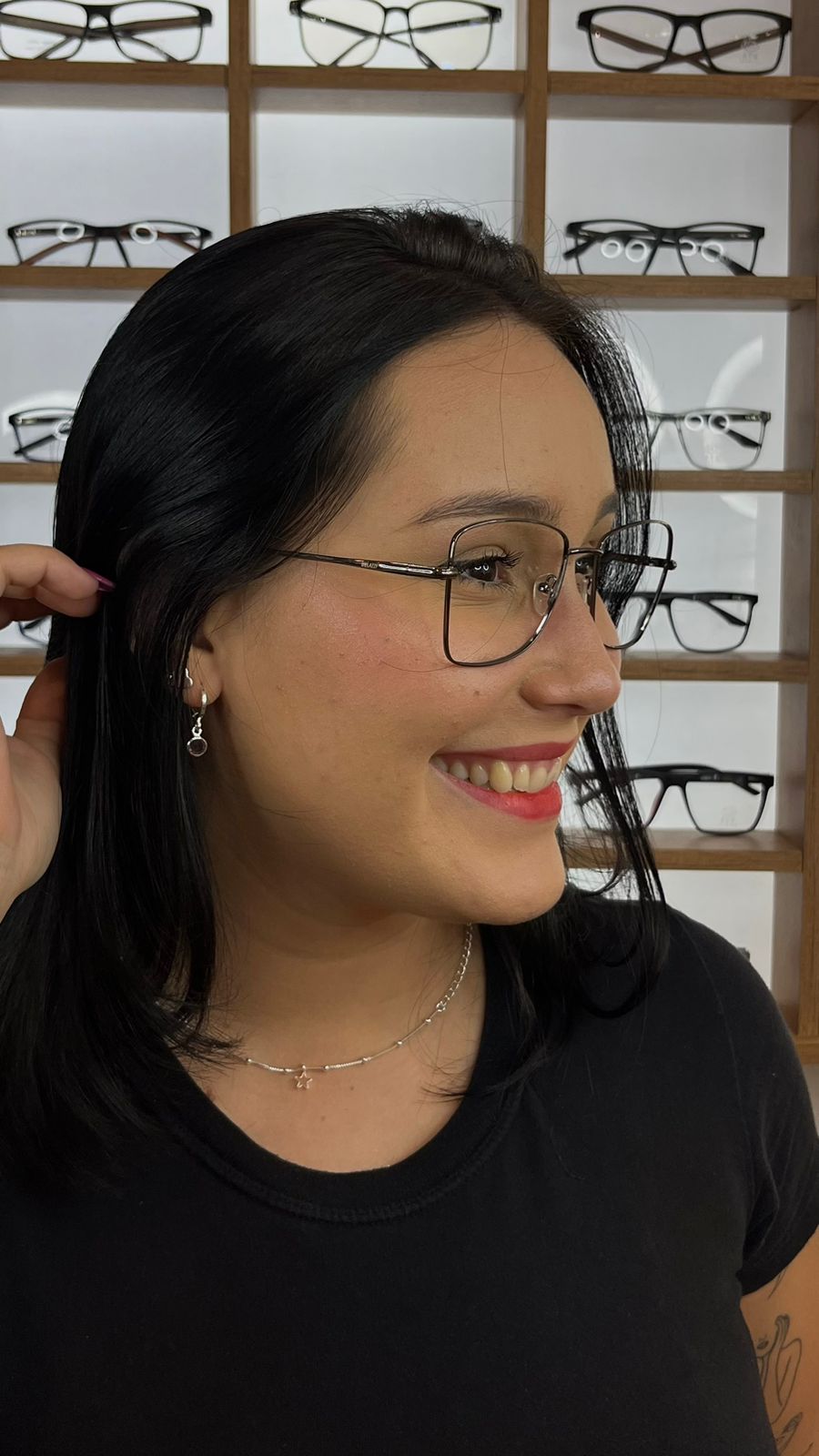 A Luna é um óculos aramado na cor grafite, com um design leve e sofisticado. Seu estilo minimalista e moderno torna-o uma escolha versátil e elegante, ideal para complementar qualquer visual.