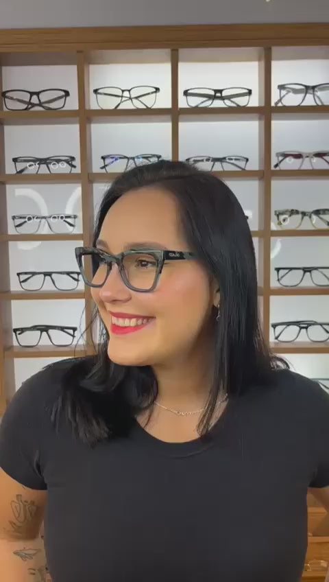 A armação Estrela é confeccionada em acetato verde oliva, combinando elegância e modernidade. Seu design leve e resistente é perfeito para quem deseja um toque de sofisticação em uma peça discreta e versátil.