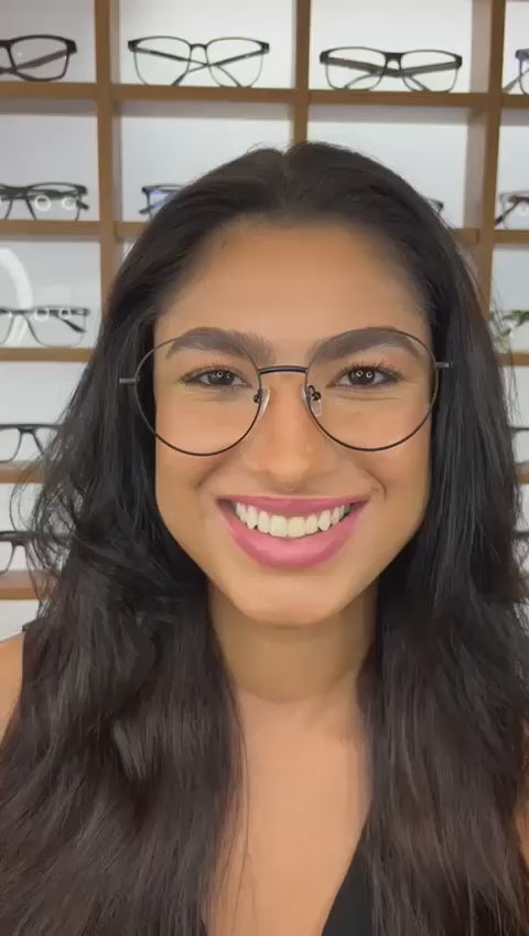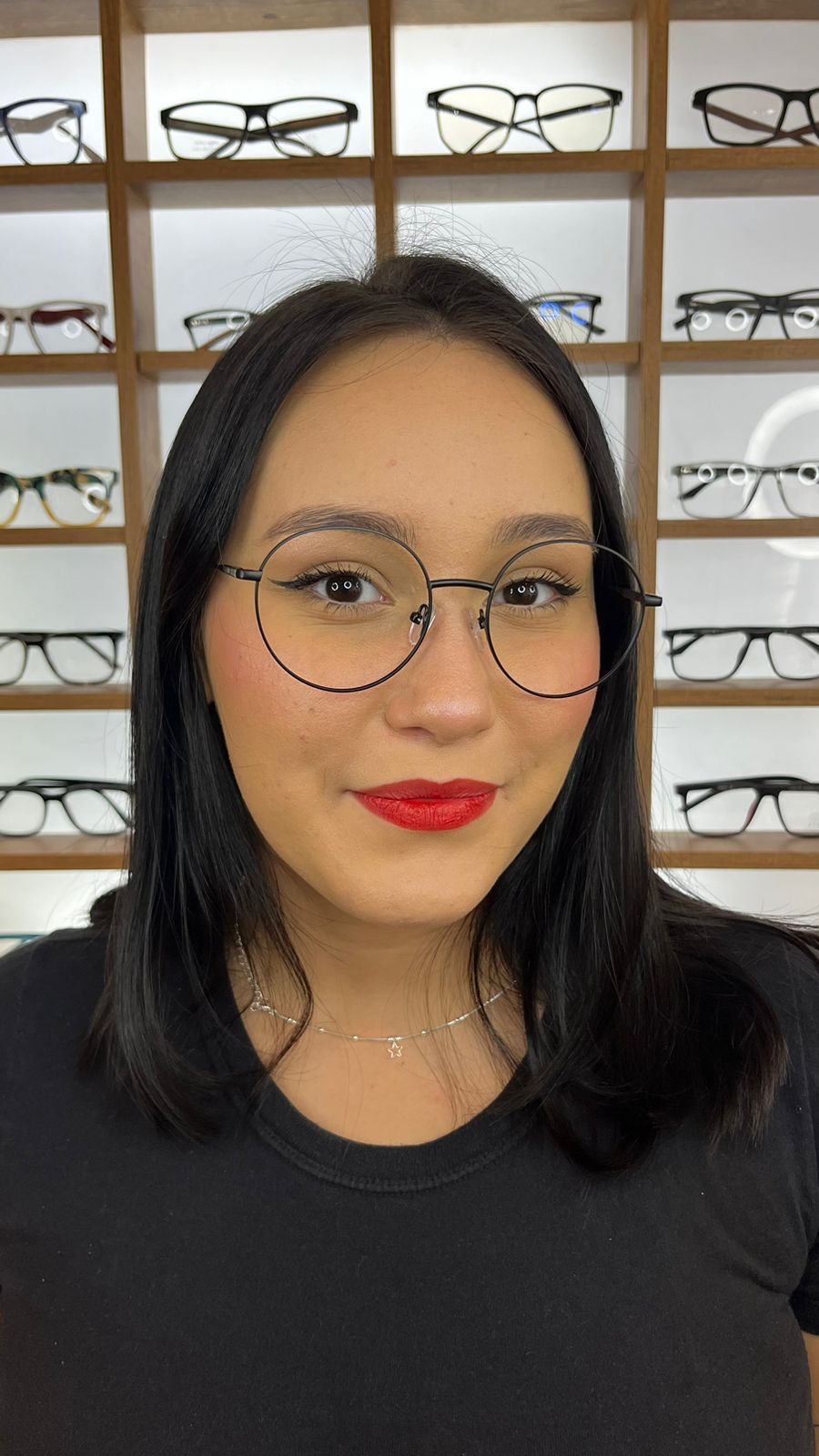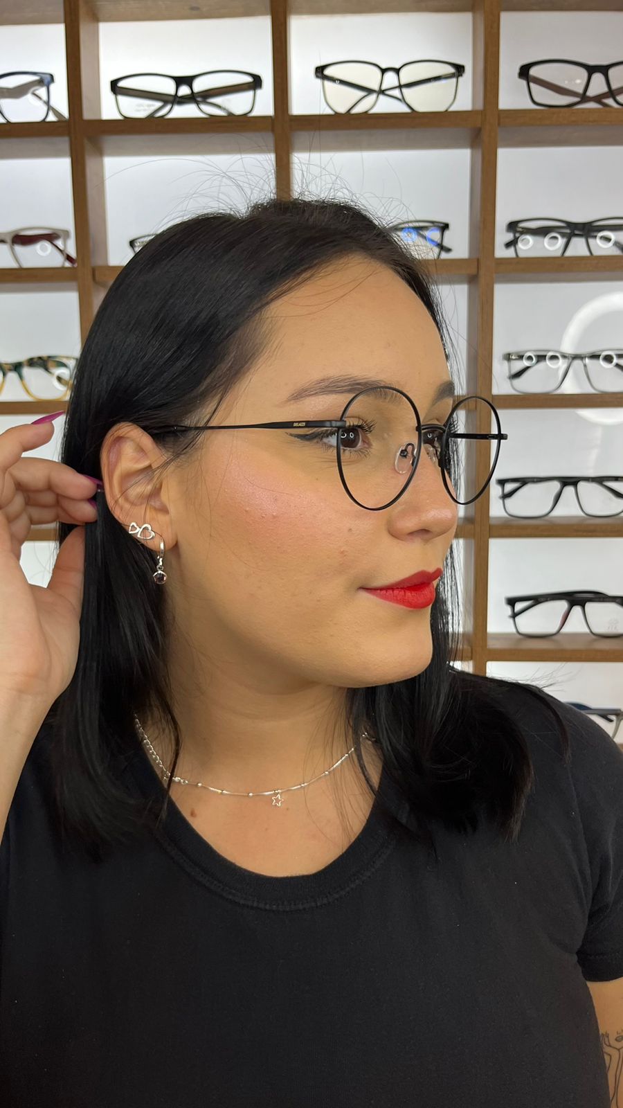 A armação Isis é um modelo redondo clássico, em preto, com design unissex. Versátil e atemporal, é ideal para quem busca elegância discreta e estilo.
