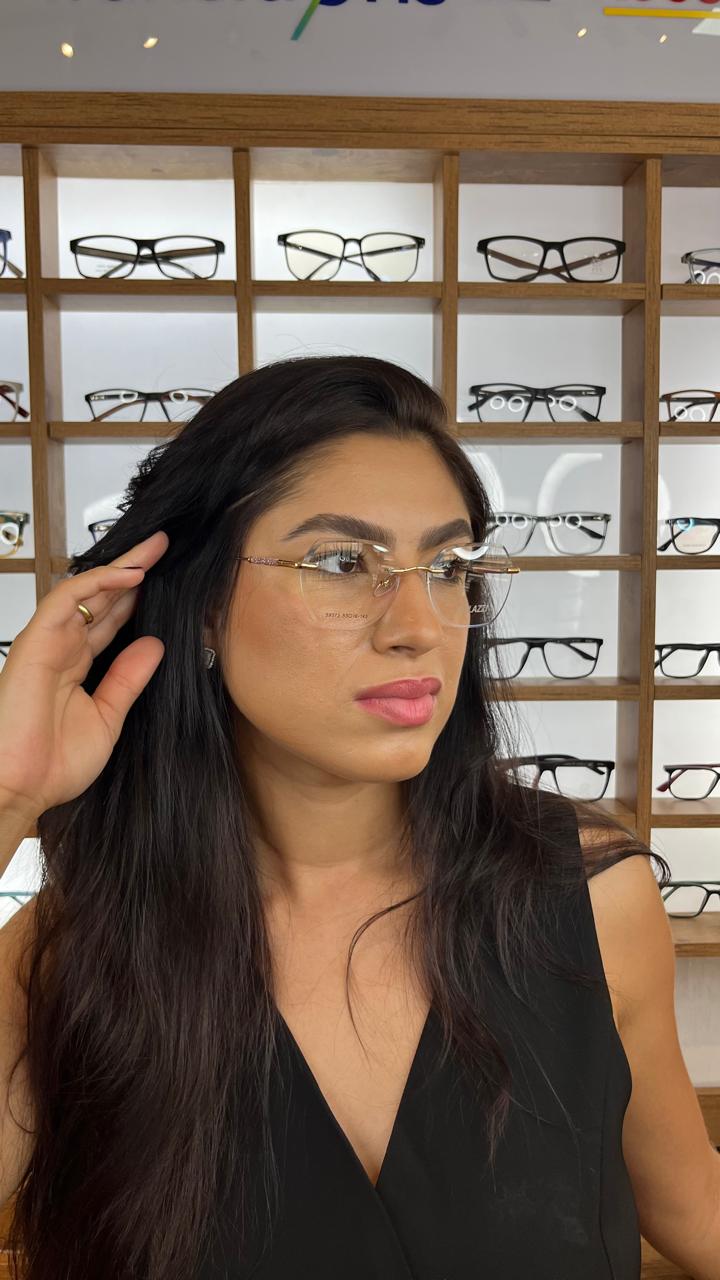 A armação Jecci é um modelo três peças com formato geométrico sofisticado. Minimalista e moderno, combina leveza e elegância para um visual único e refinado.