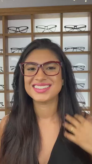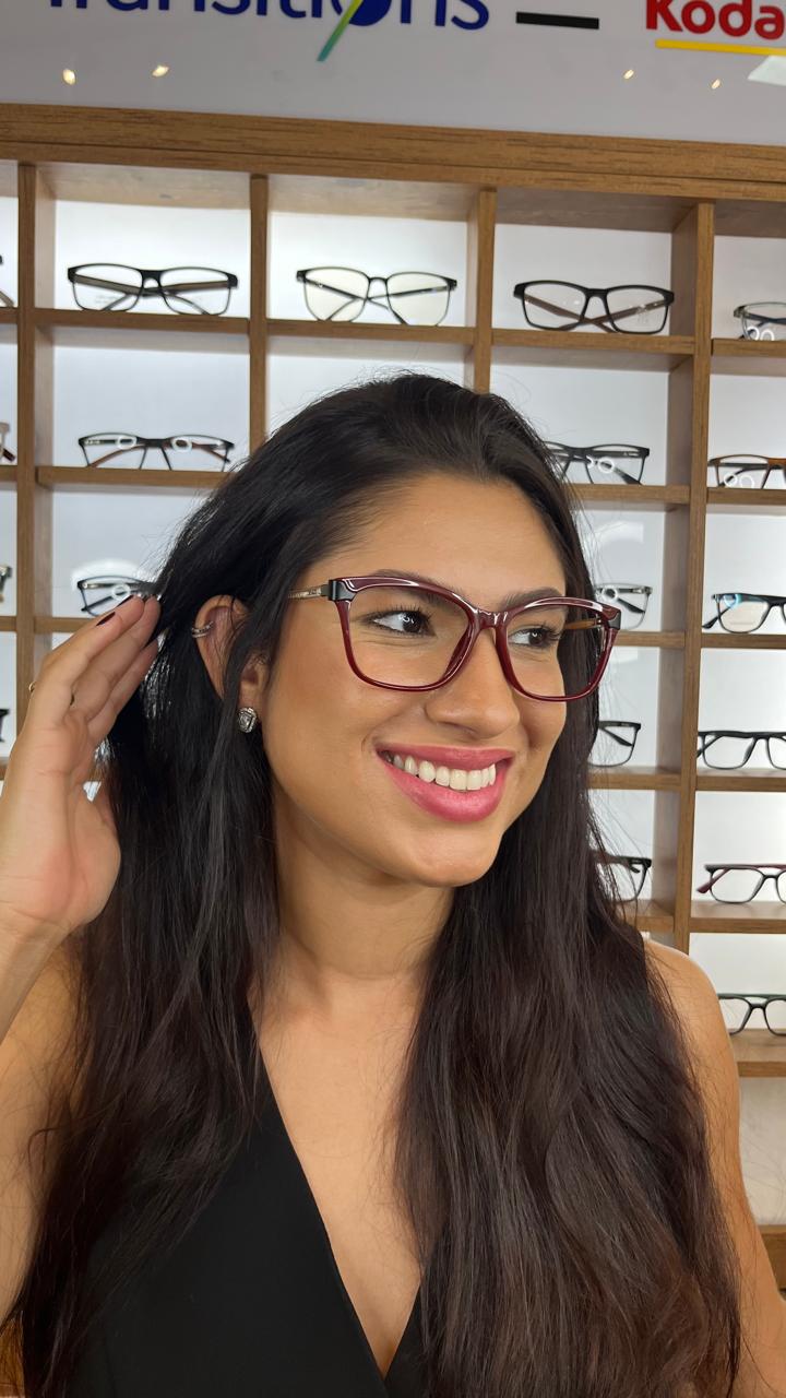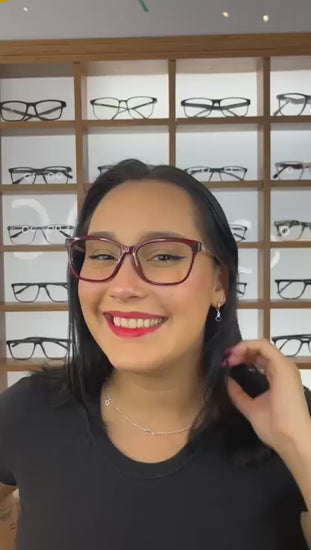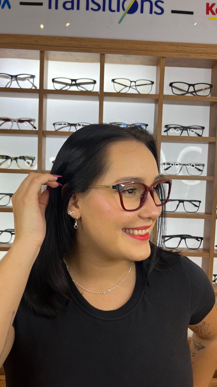 O modelo Liz é um óculos em acetato bordô, com detalhes em preto que conferem um toque de sofisticação e contraste. Seu design moderno e elegante é perfeito para quem busca um visual arrojado e cheio de personalidade.