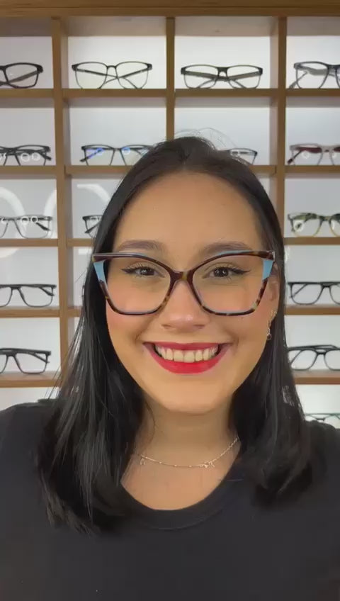 A Raika é um óculos em acetato tartaruga com um design angulado e um delicado detalhe em turquesa, que adiciona um toque de modernidade e personalidade. Uma peça sofisticada que transforma qualquer visual.